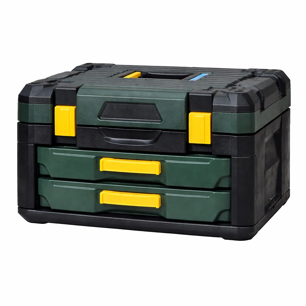 Caja de herramientas apilable de plástico ABS negro verde 52cm x 30cm x 25cm