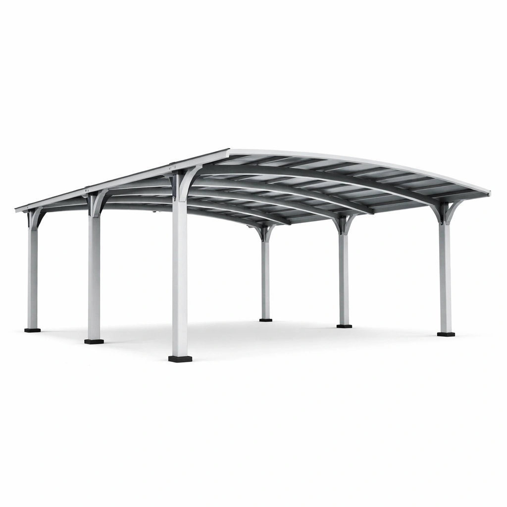 Cochera de aluminio con techo curvado plata 600x400x300 cm