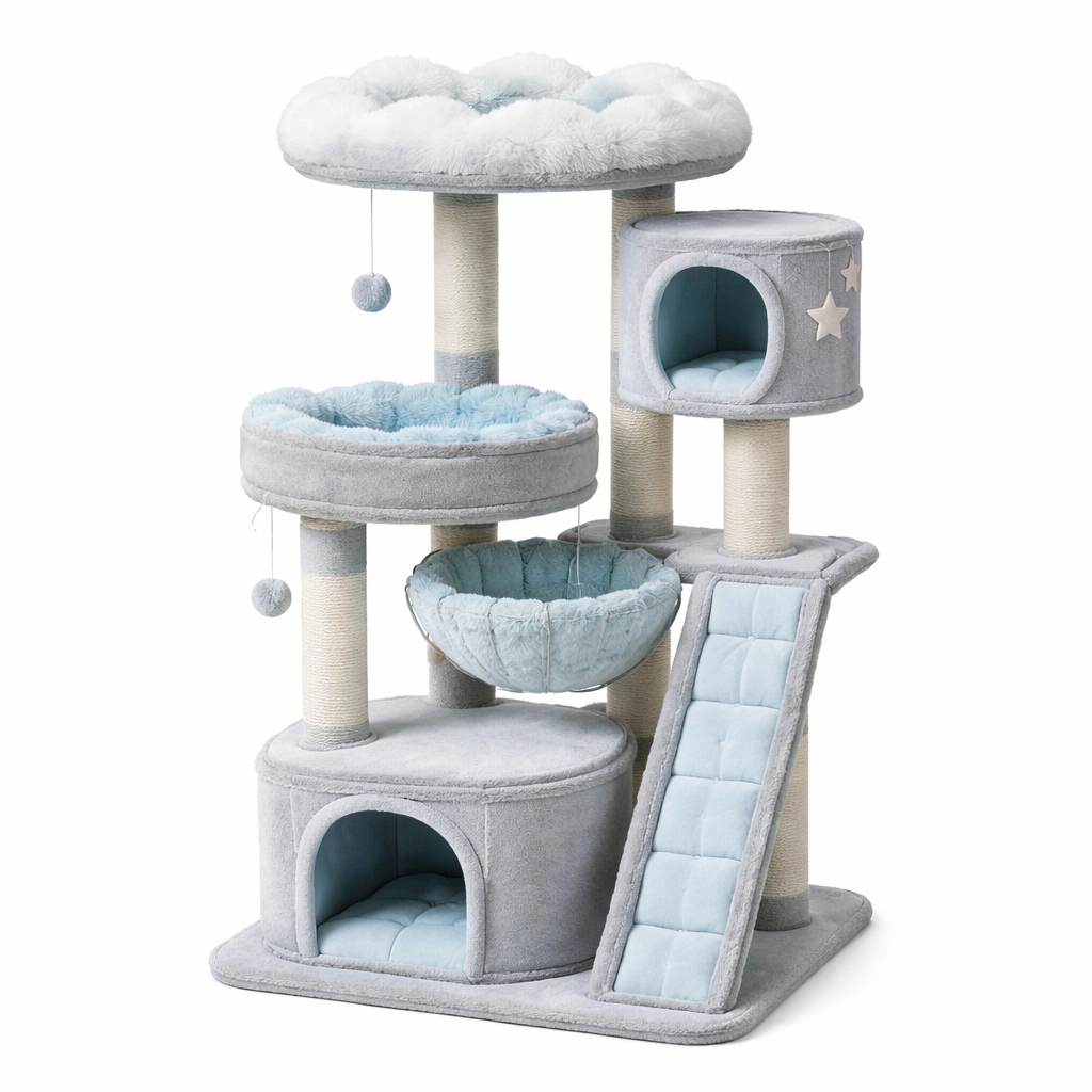 Este árbol para gatos está diseñado para ofrecer múltiples actividades para sus felinos.